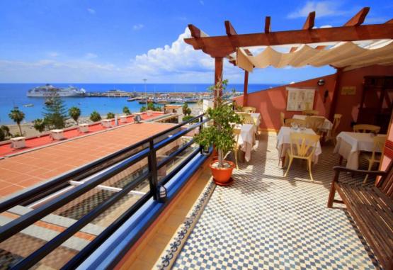Camerele luminoase oferă vedere spre ocean sau spre piața centrală animată din Los Cristianos. Restaurantul hotelului servește specialități spaniole și internaționale, iar terasa de pe acoperiș, cu piscină și zone de relaxare, oferă panorame spectaculoase asupra oceanului și a stațiunii.
