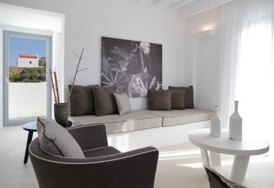 Unitățile de cazare de la Hotelul Livin Mykonos sunt amenajate in stil cicladic tradițional, cu influențe moderne. Dotările includ aer condiționat, minibar și TV cu ecran plat, iar unele unități au zonă de living.