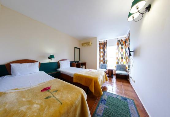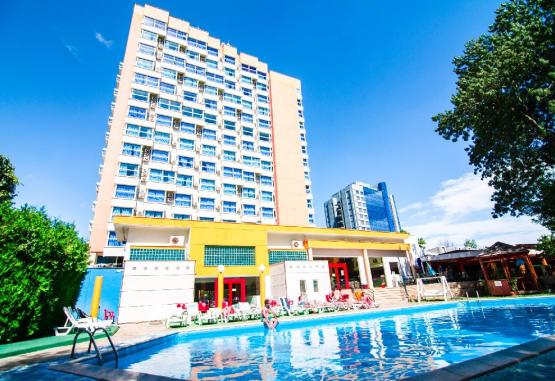 HOTEL MAJESTIC este situat in Olimp, la 150 m de plaja si detine 219 camere, dintre care 205 duble si 14 apartamente. Va informam ca incepand cu sezonul 2021 se va incasa la check-in taxa de statiune, in valoare de 5 lei/persoana/zi, conform HCL 283/23.12.2020. Vor fi taxate toate persoanele cu varsta de 18 ani impliniti.Dotari si serviciiHotel Majestic Olimp este printre primele hoteluri din statiune, pozitionat in zona centrala, la doua minute de plaja, oferind servicii si facilitati superioare. Datorita dispunerii perpendiculare pe linia tarmului, oaspetii nostri se pot bucura de o minunata priveliste catre Marea Neagra. Incepand cu anul 2002, cand hotelul a fost preluat de catre grupul Phoenicia Hotels, acesta a devenit punctul de referinta al vacantelor de vara petrecute intr-o atmosfera familiala.Hotelul detine restaurant, parcare, sala conferinta 80 locuri, loc de joaca copii, internet in lobby, terasa, gradina, piscina in aer liber, sauna, sala fitness, parcare proprie, internet.Nu se accepta animale de companie.Hotelul Majestic Olimp dispune de doua piscine pentru oaspetii sai:Piscina pentru adulti: este incalzita si are o lungime de 15 metri, o latime de 10 metri si o adancime variabila intre 1,50 si 2,50 metri.Piscina pentru copii: este de asemenea incalzita si are o lungime de 3 metri, o latime de 2 metri si o adancime de 0,70 metri.Servicii incluse:- program de seara - muzica live pentru adulti;- acces gratuit la cele 2 locuri de joaca situate atat in interiorul hotelului, cat si in exterior;- acces gratuit la piscinele complexului cu sezlong gratuit in limita disponibilului;- piscina pentru copii este incalzita pe intreg sezonul;- umbrele/ hamac/ balansoar, gratuite la piscina in limita disponibilului;- acces gratuit internet in complex doar in loby-bar si receptie;- parcare auto gratuita in limita locurilor disponibile;- pastrarea obiectelor de valoare/ depozitare si pastrarea bagajelor/ patut bebelus la cerere/ comanda taxi;- jocuri divertisment (sah, table, rummy, carti de joc, tenis de masa);- stand de presa nationala si internationala la receptie, informatii turistice, cultural-sportive, adrese;- convorbiri interne si internationale; servicii postale, servicii fax;- sala de conferinta.Servicii masa- restaurant propriu 3*Mic dejun bufet suedez (07:30 - 10:00) include: diverse preparate si bauturi: apa, suc, ceai, lapte si cafea;Demipenisune cu pranz bufet suedez (12:30 - 14:30) cu bauturi alcoolice si nonalcoolice incluse pe durata mesei;Demipensiune cu cina bufet suedez (18:00 - 20:30) cu bauturi alcoolice si si nonalcoolice incluse pe durata mesei;Cine tematice: Luni - seara Dobrogeana, Marti - Seara Asiatica, Miercuri - Seara Orientala, Vineri - Seara Greceasca, Sambata - Seara Romaneasca, Duminica - BBQ.La suplimentul all inclusive bauturile sunt incluse in intervalul 11:00 - 20:30.Dotari camereCamera dubla (18 mp) Capacitate maxima: 2 adulti + 1 COPIL, 0- 7.99 ani;In functie de disponibilitatea hotelului, se va aloca o camera cu pat matrimonial sau doua paturi (twin).Camera single (18 mp) Capacitatea maxima: 1 adult + 1 copil 0- 7.99 ani. Diferenta dintre camera dubla si cea single este doar de masa, camera fiind aceeasi.Apartament (36 mp) Capacitate: 2 adulti sau 2 adulti + 2 copii 0- 13.99 ani sau 3 adulti si un copil 0-7.99 ani, al doilea copil plateste micul dejun, al treilea adult plateste 50% dintr-un loc de cazare si micul dejun.Este compus din 2 camere, un dormitor cu pat matrimonial si un living spatios cu canapea extensibila in care pot dormi 2 copii mai mici de 0 - 13.99 ani sau un adult si un copil. Apartamentul dispune de frigider. Toate apartamentele sunt situate cate unul pe fiecare etaj si cele de la etajul 3 in sus au vedere partial spre mare.Toate camerele ofera aer conditionat, TV, pardoseala cu gresie, racitor tip minibar, baie dotata cu cadita de dus, cada in apartamente, prosoape, cosmetice personalizate in baie, sistem acces pe baza de cartela magnetica sau cheie.