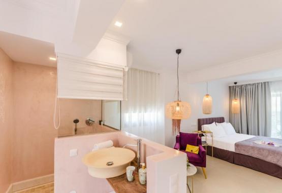 Zona de piscină, care include un bar langă piscină, oferă o cadă tip jacuzzi si un bar la nivelul piscinei, iar terasa spatioasă, inzestrată cu sezlonguri, oferă umbră suficientă in zilele călduroase de vară.