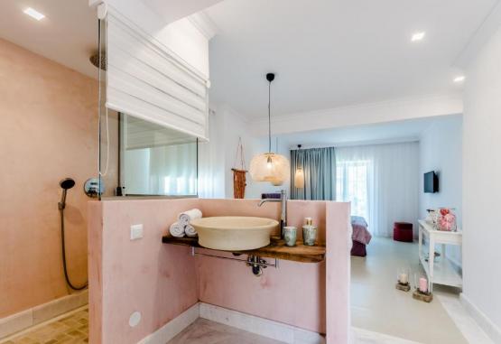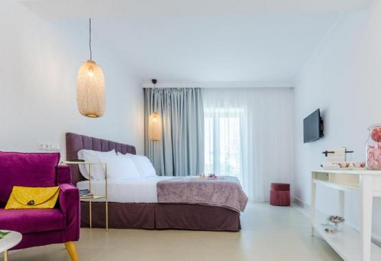Interiorul elegant, mobilat intr-un stil simplu, traditional insulei, ii conferă un aer de autenticitate cretană, oferind in acelasi timp toate facilitătile tipice unui hotel modern.