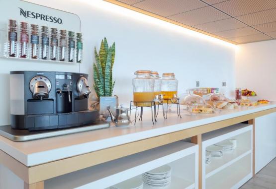 Restaurantul Trasluz al hotelului este specializat in preparate din orez si peste proaspăt. De asemenea, există un snack bar langă piscină și un lounge bar elegant.