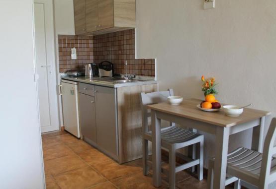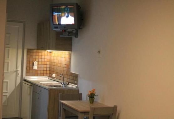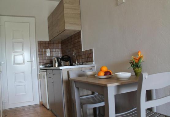 Toate studiourile de la Melody au chicinetă, zonă de luat masa, fierbător electric și vedere la grădină. Baia este dotată cu duș.