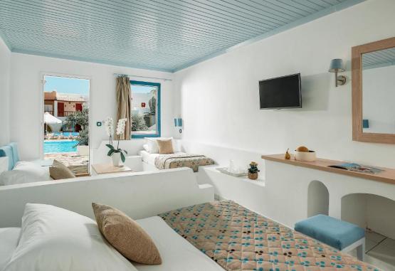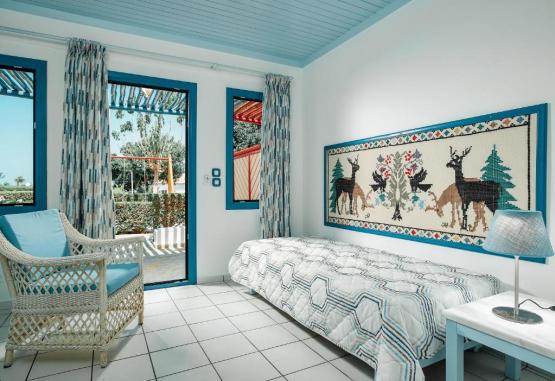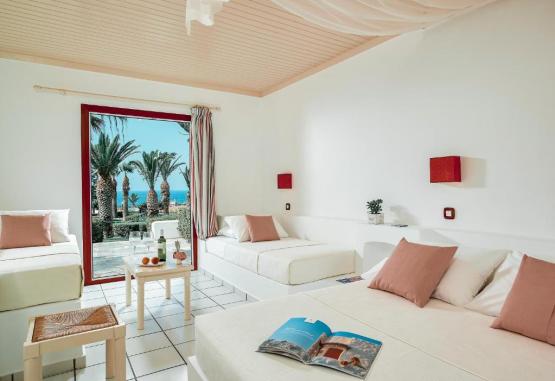 La acest hotel, camerele sunt dotate cu climatizare, o zonă de relaxare, un televizor cu ecran plat cu canale prin satelit, o cutie de valori și o baie proprie cu cadă, articole de toaletă gratuite și un uscător de păr. Baia proprie oferă papuci de casă. La Mitsis Cretan Village, fiecare cameră include lenjerie de pat și prosoape.
