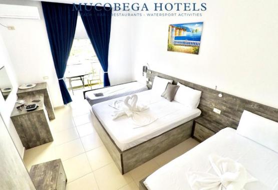 Mucobega Hotel 2 se află in Sarandë, la cațiva pași de Plaja Sarandë Bay, și oferă o grădină, un bar, o zonă de plajă privată și parcare privată gratuită. Fiecare unitate de acest hotel de 4 stele are vedere la mare, iar oaspeții beneficiază de acces la un loc de joacă pentru copii. Proprietatea are o recepție deschisă non-stop, servicii de transport de la/la aeroport, room-service și WiFi gratuit in proprietate.