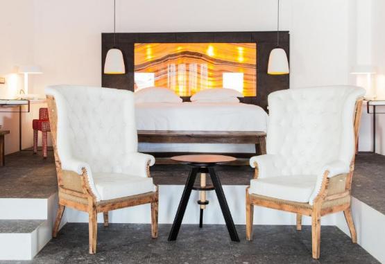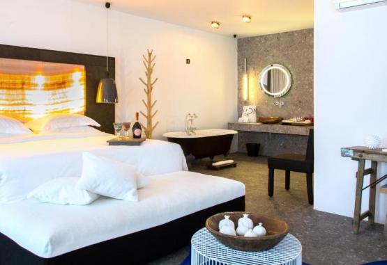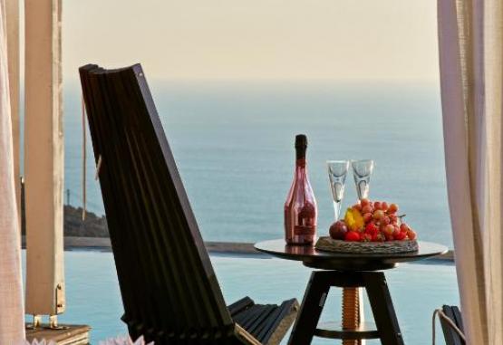 Micul dejun bogat include iaurt grecesc, miere ecologică și delicatese mykoniene și poate fi savurat pe terasa restaurantului, cu vedere la mare. La mesele de pranz și cină, bucătarul-șef pregătește mancăruri gourmet după rețete tradiționale.