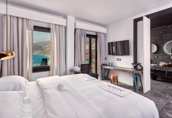 Unitățile de cazare de la Myconian Avaton au decor in stil cicladic, cu detalii moderne. Toate unitățile de cazare oferă aer condiționat, TV cu ecran plat cu canale prin satelit, iPod docking station și minibar. Băile de lux sunt dotate cu articole de toaletă gratuite, halate de baie și papuci.