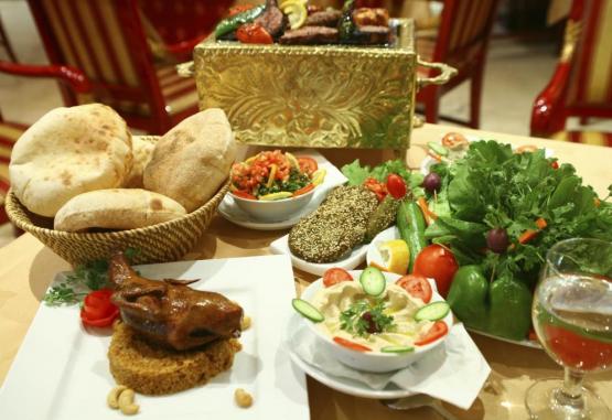 La restaurantul proprietății, oaspeții pot savura o selecție de specialități arabe, precum și preparate internaționale clasice. Room service este disponibil nonstop.