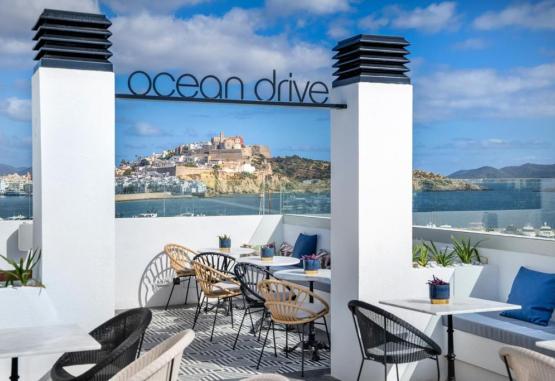 Ocean Drive Ibiza este inspirat de South Beach și decorat in stil art-deco din Miami. Hotelul este și mai impresionant noaptea, cand este iluminat de lumini albastre de neon și vizibil peste golful Ibiza.