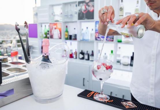 Terasa de pe acoperișul hotelului, Sky Bar, vă permite să admirați priveliștea deosebită asupra Mării Mediterane, a castelului și a orașului vechi Ibiza, chiar vizavi de portul privat din Marina Botafoch.