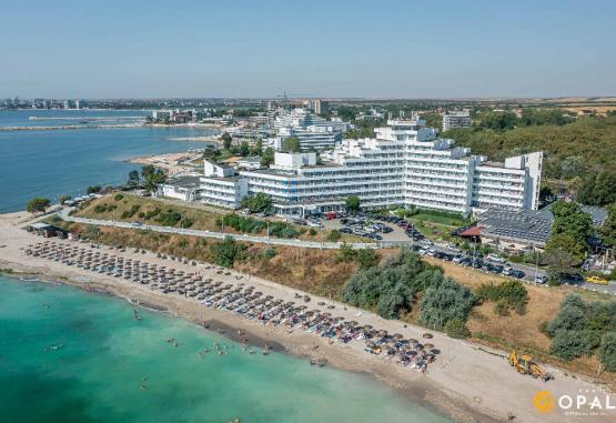 Hotelul Opal dispune de plaja privata si sezlongurile sunt gratuite pentru toti oaspetii, in limita disponibilitatii, fara costuri suplimentare! HOTELUL OPAL este situat in partea nordica a statiunii Cap Aurora, pe faleza, la doar 50 de metri de plaja. Hotelul dispune de 217 camere duble, dintre care 150 ofera vedere la mare, precum si de 15 apartamente compuse din living, dormitor si doua balcoane cu vedere spre mare.Va informam ca incepand cu sezonul 2022 se va incasa la check-in taxa de statiune, in valoare de 5 lei/persoana/zi, conform HCL 283/23.12.2020. Vor fi taxate toate persoanele cu varsta de 18 ani impliniti.Dotari si serviciiIncepand cu sezonul 2023, Hotel Opal pune la dispozitia oaspetilor o piscina cu apa incalzita pentru adulti si copii ( in lunile Iunie si Septembrie), la temperaturi intre 23-26C, conform normativelor pentru piscine exterioare, atunci cand este necesar. Dusul de pe piscina exterioara are apa rece si calda. Piscina are dimensiunile de 20 x 12 m, cu adancimea cuprinsa intre 50 cm in zona copiilor si 130 cm in zona adultilor. Plaja piscinei este amenajata cu sezlonguri si umbrele si este deservita de un bar nou construit. Sezlongurile nu se pot rezerva in avans si se aloca in ordinea sosirii.Accesul la piscina se face pe baza bratarii primite la receptie.Regulamentul si programul de functionare a piscinei sunt disponibile la receptie.Fumatul la piscina este strict interzis.Intrarea cu produse si bauturi aduse din exterior si consumul acestora este strict interzis - amenda: 100 lei.Turistii Hotelului Opal au acces facil la plaja amenajata. Accesul se face de la terasa hotelului, coborand treptele pe partea stanga. Drumul trece prin prima sectiune de plaja, urmand apoi Plaja Opal by the Sea, parcursul facandu-se pe jos in maxim trei minute. Acces la sezlonguri in regim de inchiriere, la receptie se va elibera un ticket care trebuie prezentat personalului de la plaja. Fiecare sezlong include saltea, masuta si umbrela, pretul de inchiriere poate fi consultat la receptie.Contravaloarea sezlongurilor se achita la receptie si sunt alocate in ordinea sosirii, in functie de disponibilitate. Nu se pot rezerva in avans de la hotel, ci doar la personalul de la plaja, daca exista disponibilitate.Restaurantul hotelului a fost complet renovat in 2022, cu amenajare moderna si mobilier nou. Mesele sunt servite sub forma de bufet suedez pentru mic dejun si pranz. Terasa Opal, in aer liber si cu vedere la mare, este deschisa pentru pranz si cina, servirea meselor fiind sistem bufet suedez, in cazul in care se intruneste numarul minim de 50 de persoane, sau meniu fix, in situatia in care nu se atinge acest numar minim. Serile sunt acompaniate de muzica live.Pentru copii, hotelul ofera doua locuri de joaca: unul interior, cu supraveghetor, si unul exterior. Kids Club - gratuit - este destinat copiilor cu varsta intre 3 si 10 ani, supravegheati de un adult, iar programul este afisat la receptie. In Lobby, se afla Fun Room, centru de distractii accesibil contra-cost pentru copiii peste 10 ani (exceptie facand ofertele speciale cu acces inclus).Pentru momentele de relaxare, Hotel Opal pune la dispozitie o zona de lounge in aer liber, amenajata cu mese de bar, bancute, umbrele si sezlonguri. De asemenea, hotelul dispune de un teren de tenis cu zgura; echipamentele (rachete si mingi) se pot inchiria contra cost.Parcarea hotelului este gratuita, in limita locurilor disponibile.Purtarea bratarii primite la check-in este obligatorie pe tot parcursul sejurului.Hotelul accepta animale de companie de talie mica (maxim 10 kg), contra cost. Animalele nu au acces in restaurant in perioada servirii meselor si la piscina si trebuie sa poarte lesa pe intreaga suprafata a proprietatii.Servicii masaMasa: - restaurant propriu- micul dejun se serveste sub forma de bufet suedez.- demipensiunea include mic dejun si pranz in sistem bufet suedez, bauturi incluse: apa, bere si sucuri.Pranzul se serveste incepand cu a doua zi de cazare, iar in ziua de check out, ultima masa este micul dejun.Cina se serveste in sistem bufet suedez, in cazul in care se intruneste numarul minim de 50 de persoane, sau meniu fix, in situatia in care nu se atinge acest numar minim. Mesele se servesc in sistem bufet suedez in perioada 22.06-05.09.2026. In afara acestei perioade, mesele se servesc in sistem bufet suedez pentru minim 40 de oaspeti. Sub acest numar minim, mesele se servesc sub forma de meniu fix.All Inclusive Light contine 3 mese tip bufet suedez in perioada 22.06-05.09. 2026 cu bauturi incluse (apa, suc si bere - la dozator) pentru un numar minim de 50 de persoane. Sub acest numar, mesele se servsc sub forma de meniu fix. Pentru perioada de extra sezon (mai, inceput de luna Iunie, sfarsit sezon), cina se va acorda optional tot in sistem meniu fix.PACHETELE CU DEMIPENSIUNE NU INCLUD MASA PENTRU COPII 0 - 11.99 ANI (INCLUD DOAR MIC DEJUN).Dotari camereCamerele duble standard ( 99 camere), beneficiaza de bai renovate in 2025. Acestea sunt situate la etajele 1, 2 si 3 ale hotelului si ofera vedere spre mare sau spre padure. Camerele au 19 mp si sunt dotate cu doua paturi twin care pot fi unite,TV, minibar, baie cu dus de aproximativ 2,2 mp, aer conditionat, feon, internet, balcon cu mobilier si uscator, mocheta si plasa impotriva insectelor.Camerele duble executive (118 camere), sunt situate la etajele 4, 5 si 6 si sunt dotate cu paturi matrimoniale (160x200 cm), oferind vedere spre mare sau spre padure. Acestea au fost renovate complet in anul 2020, au o suprafata de 19 mp si dispun de TV, aer conditionat, minibar, feon, internet, balcon cu mobilier si uscator, parchet si plasa impotriva insectelor. Baile au fost renovate, sunt mai spatioase decat baile camerelor standard si sunt dotate cu dus. Toate camerele au in dotare si fotoliu extensibil.Apartamentele ( 17 apartamente), cu o suprafata de de aproximativ 40 mp, au vedere spre mare sau spre padure si sunt formate din living cu canapea extensibila, dormitor cu pat 