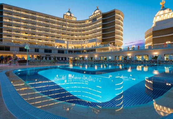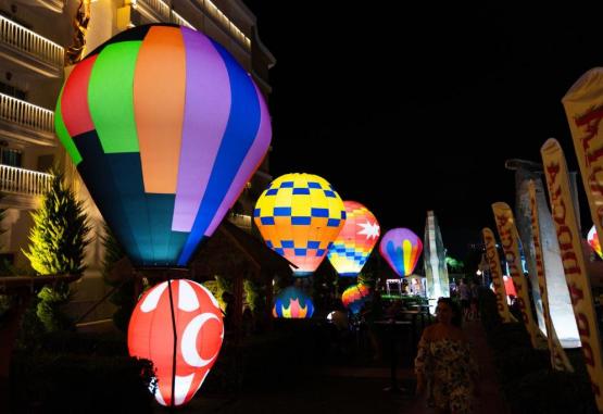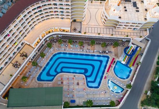 Această proprietate este la 6 minute pe jos față de plajă. Oz Hotels Sui se află in Alanya și are centru de fitness, bar, lounge comun și grădină. Această proprietate pune la dispoziție recepție cu program non-stop, restaurant, parc acvatic și piscină in aer liber, disponibilă pe tot parcursul anului. Proprietatea are hamam, facilități de karaoke și room service.