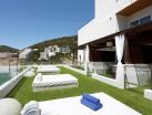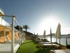 Palladium Hotel Cala Llonga are o terasă mare cu șezlonguri și un teren de tenis.