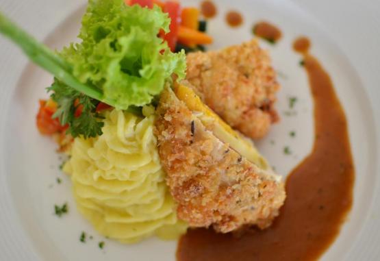 Restaurantul Rama Beach, cu vedere la plajă și piscină, servește specialități indoneziene și preparate europene. Oaspetii se pot relaxa cu un cocktail la XO Lounge Bar.