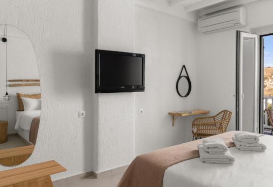Camerele cu aer condiționat au balcon privat și sunt dotate cu TV, uscător de păr, frigider și baie privată. Unele camere oferă vedere la Marea Egee.