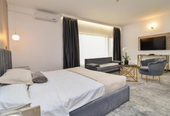 Pensiunea Alfa 5* este situata pe malul lacului Siutghiol in Mamaia Nord, la o distanta de aproximativ 1.5 km de Mamaia si 350 m de plaja. Pensiunea are o capacitate de 16 camere duble si 2 apartamente.Va informam ca incepand cu sezonul 2023, se va incasa la receptie in momentul cazarii taxa de statiune, reprezentand 1% din valoarea tarifului de cazare fara T.V.A, pentru fiecare noapte de cazare conform HCL NR. 614/27.12.2022.Dotari si servicii:Pensiunea are in dotare salon mic dejun-bar, loc de joaca pentru copii, scaunele de masa pentru copii, ponton si undite pentru pescuit, terasa pe malul lacului, hidrobiciclete pe lac, lobby, zona de relaxare, barbeque, posibilitatea de a folosi bucataria, seif la receptie, internet wireless, piscina exterioara amenajata cu sezlonguri si umbrelute. Pensiunea Alfa pune la dispozitie si parcare privata, oferita gratuit, in limita disponibilitatii. Nu se accepta animale de companie.Servicii masa:Bucataria se pune la dispozitie in sistem self service - este dotata cu aparatura si vesela necesare, iar oaspetii o pot folosi pentru prepararea unui mic dejun sau a unei mese usoare (fara ciorbe, prajeli, sau alte preparate ce degaja miros puternic sau produc fum). Curatenia bucatariei dupa prepararea mesei este tot in sarcina clientului. Dotari camere:Camera dubla standard are in dotare pat matrimonial (180x200), LCD tv, minibar, aer conditionat, telefon, internet wireless, bai cu dus, uscator de par, papuci, podele cu mocheta, plase de tantari, balcon propriu. Este amplasata la etajul 1. Suprafata: 24 mpCamera dubla family are in dotare un pat matrimonial (180x200) si o canapea extensibila (1 persoana), LCD tv, minibar, aer conditionat, telefon, internet wireless, baie cu dus, uscator de par, papuci, podele cu mocheta, plase de tantari, balcon propriu. Este amplasata la parter si etajul 1. Suprafata 35 mp.Apartamentul este format din dormitor cu pat matrimonial (180x200) si living cu canapea extensibila (2 persoane). Are baie cu cabina de dus si jacuzzi. Este dotat cu LCD tv, minibar, 2 aparate de aer conditionat, telefon, internet wireless, uscator de par, halat, papuci, podele cu mocheta, plase de tantari, balcon propriu. Se afla situat la etajul 1. Suprafata: 70 mp.Patul suplimentar este de tip pliant, dimensiune 80x200.Facilitati copii in camera cu 2 adulti:- 0 - 7.99 ani - gratuitate la cazare fara pat suplimentar asigurat;- 8 - 17.99 ani - achita pat suplimentar, 70 lei/noapte;Se asigura la cerere, in limita disponibilitatii, patut pentru bebe.