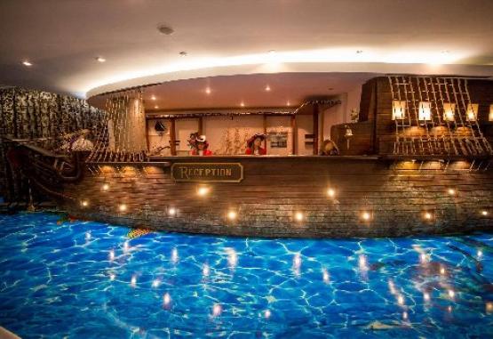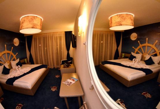 InformatiiHOTEL PIRATES RESORT este situat in nordul statiunii, pe plaja, intr-o zona deosebita, cu verdeata, in care plaja este foarte larga, cu nisip fin si intrare lina in mare. Este un hotel tematic unic, in spiritul aventurii, ideal pentru familii cu copii si este alcatuit din 2 corpuri ce dispun de 158 camere duble si 8 apartamente.Va informam ca incepand cu sezonul 2023, se va incasa la receptie in momentul cazarii taxa de statiune, reprezentand 1% din valoarea tarifului de cazare fara T.V.A, pentru fiecare noapte de cazare conform HCL NR. 614/27.12.2022Dotari si serviciiHotelul pune la dispozitia turistilor: restaurant, terasa, bar,parcare gratuita in limita disponibilitatii( pachetele cu All si pensiune completa) sala de conferinta. Programul de entertainment al hotelului atat pentru adulti cat si pentru copii (mini-club, aqua-gym, concursuri, muzica live pe terasa in fiecare seara etc.) se desfasoara zilnic .Piscina exterioara cu apa incalzita functioneaza in perioada 01.06 -13.09.2026.Hotelul accepta animale de talie mica contra cost.PRODUSUL:'GOLD PIRATE'ofera turistilor in perioada 01 iulie - 31.08 servicii de masa All Inclusive care cuprinde:- cazare pe oricare din tipurile de camere;- cele 3 mese in regim bufet suedez- Bauturi racoritoare, apa, sucuri la dozator precum si ceai, cafea, (pentru toate serviciile de masa) dar si bauturi alcoolice: vinul casei, bere draft , o selectie de bauturi spirtoase - Acces gratuit la evenimentele de pe terasa Pirates Island, piscina, miniclub- Acces gratuit la plaja PIRATES BEACH (2 sezlonguri/camera).Servicii masaMASA: restaurant propriuAll Inclusive in perioada 01.07.2026 - 31.08.2026:Mesele se servesc sub forma de bufet suedez: mic dejun (07.00-10.00), pranz (12.30-14.30), gustare intermediara (16:30 - 17:30), cina (19.00-21.00)Bauturi non-alcoolice si alcoolice incluse : apa plata si minerala, cafea si bauturi racoritoare (gama Pepsi) oferite pe terasa restaurantului in intervalul 10.00-22.00;Bauturi alcoolice: vinul casei, bere draft, vodka, whisky, lichior, coniac, bauturi aperitive, oferite la barul special amenajat pentru All Inclusive, situat pe terasa restaurantului, in intervalul 10.00-22.00;Toate bauturile incluse nu sunt imbuteliate, sunt la draft. Restaurantul poate modifica sortimentele de bauturi oferite, oricand in timpul sezonului.Micul dejun contine gustari reci si calde, preparate calde, produse dulci (gem, miere, unt, cereale), produse sarate (oua, branzeturi, mezeluri), legume proaspete (castraveti, rosii), produse lactate, produse de patiserie, fructe, fursecuri, si sunt oferite in incinta restaurantului in intervalul 07.00-10.00;Pranzul contine minim 2 feluri de ciorba/supa, 2 feluri de baza, 2 garnituri, 2 salate, deserturi/inghetata si sunt oferite in incinta restaurantului in intervalul 12.30-14.30;Gustare intermediara contine produse patiserie si sunt oferite pe terasa restaurantului in intervalul 16.30-17.30;Cina contine minim 2 feluri de baza, 2 garnituri, 2 salate, fructe, deserturi si sunt oferite in incinta restaurantului in intervalul 19.00-21.00;A LA CARTE perioada 01.06.2026 - 06.09.2026 Mic dejun 07.00-10.00- sub forma de bufet suedezPranz 12:30 - 15:30, Cina 19:00 - 23:00- se serversc A LA CARTETuristii care opteaza pentru servicii de pensiune completa in perioada 01.07 - 31.08 vor servi mesele pe terasa de pe plaja in regim a la carte in baza unui card valoric cu suma prestabilita.Dotari camereCamerele Duble - au pat matrimonial (180x190) sau doua paturi twin unite (90x190), bai cu dus, TV, telefon, internet, mochet, minibar, aer conditionat, geamuri termopan, uscator de par, balcon cu mese si scaune din plastic.Camerele Superior - au pat matrimonial, se afla in aripa de nord a hotelului sunt complet renovate, situate la parter si etajul 1, 2 si 3. Acestea au un grad de confort ridicat, tematica fiind Piratii din Caraibe.Camerele duble Privilege si Apartamentele Privilege sunt situate in corpul orientat catre Hotelul Vega (corpul Orange, cu vedere laterala la mare) la etajele 1,2 si 3, sunt complet renovate in 2017-2018, au un grad de confort ridicat si sunt tematice (fiecare camera reprezinta stilul membrilor echipajului de pirati: capitan, navigator, tunar etc). Camerele privilege au in dotare pat matrimonial (180x190). Apartamentele sunt compuse din living cu canapea extensibila si dormitor cu pat matrimonial. Au aceleasi dotari ca si camera dubla standard.Camerele Bunk Bed - sunt situate in corpul Blue la etajele 1, 2 si 3, sunt complet renovate in 2019-2020, au in dotare un pat matrimonial (180x190) si un pat suprapus destinat copiilor, sunt tematice (fiecare camera reprezinta stilul membrilor echipajului de pirati: capitan, navigator, tunar etc) si se vor adresa familiilor cu copii (capacitate camera 2 adulti si 2 copii). Camerele au balcon dar nu beneficiaza de vedere la mare.Apartamentele - sunt compuse din living cu canapea extensibila si dormitor matrimonial cu acelasi stil ca si camerele duble. In plus, au fotolii din piele si canapea extensibila in living.Apartamentele Superior - sunt in aripa de nord a hotelului complet renovate, situate la parter si etajul 1, 2 si 3. Acestea au un grad de confort ridicat, tematica fiind Piratii din Caraibe.Apartamente Privilege - sunt complet renovate, acestea au un grad de confort ridicat, tematica fiind Piratii din Caraibe. Fiecare camera este decorata in mod particular si aapartinea unui membru al echipajului de pirati: capitan, navigator, tunar, botman.Patul suplimentar (tip pliant) nu se acomodeaza in apartament. Facilitati copii in camera cu 2 adulti:In camera cu 2 adulti:In camera cu 2 adulti:- 0-6.99 ani gratuitate la cazare si mic dejun, fara pat suplimentar (pat pliant). - 7- 11.99 ani gratuitate la cazare, fara pat suplimentar si achita 50% din valoare fiecarui serviciu de masa;- copiii 12 - 17.99 ani , fiecare copil achita 50% din cazare (se asigura un pat pliant) si 100% din valoarea fiecarui serviciu de masa.