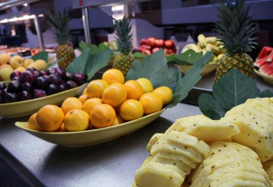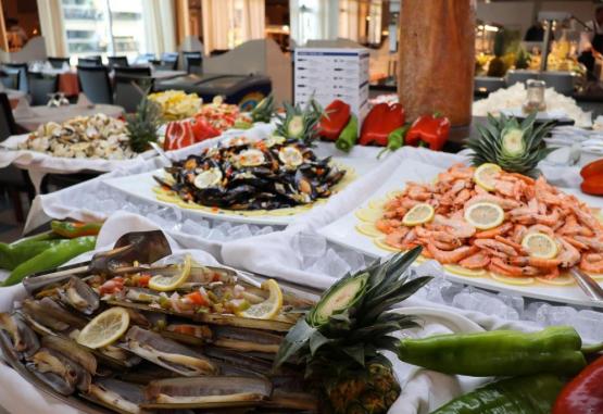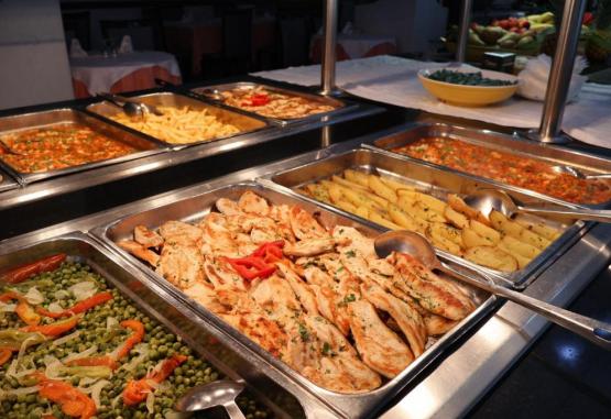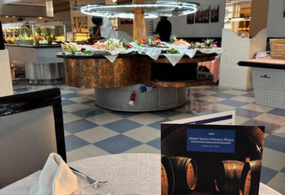 Hotelul are un restaurant tip bufet, iar vara este disponibil un bufet special pentru copii. In plus, Santa Monica oferă divertisment, inclusiv flamenco, muzică live si o discotecă in miscare.
