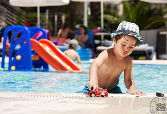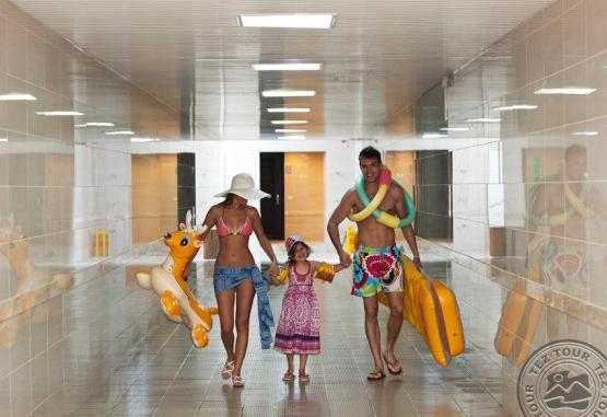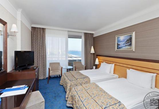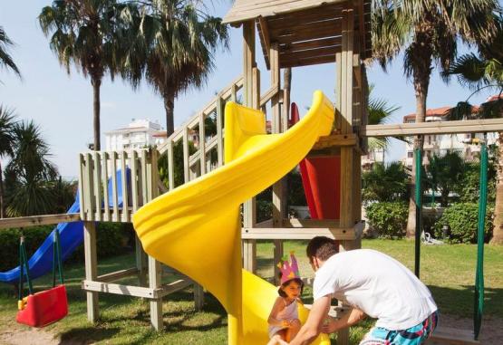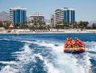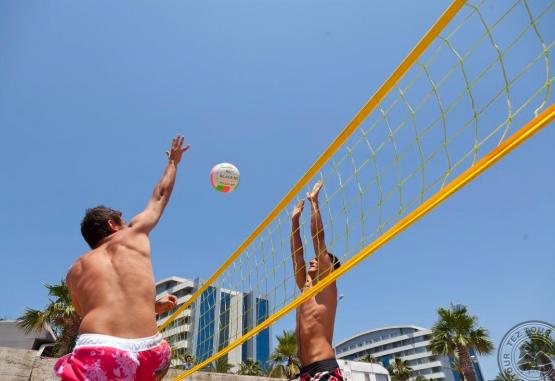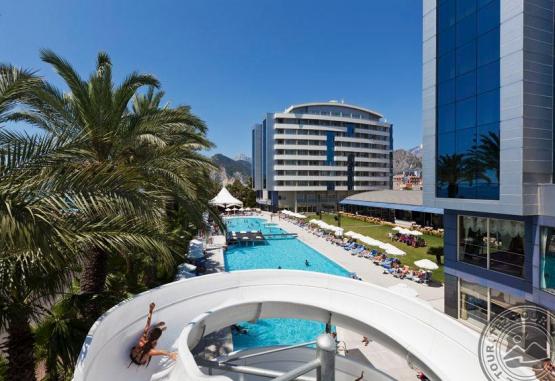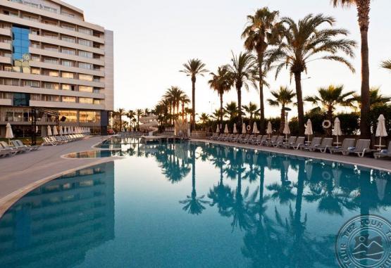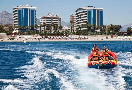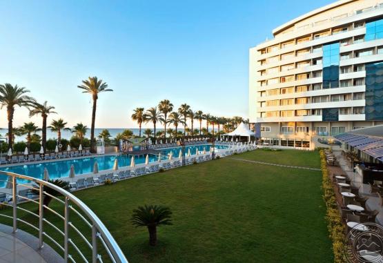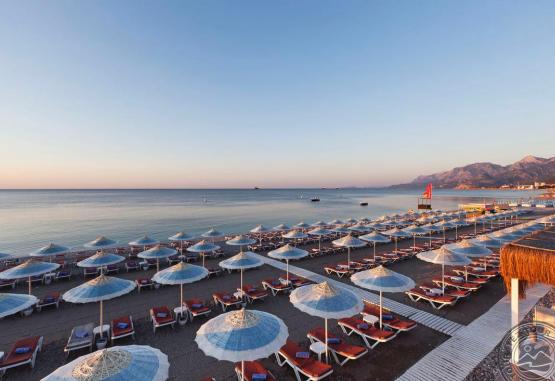 Situat la 20 km de aeroportul Antalya, la 6 km de centrul orasului Antalya, pe malul marii (acces pe plaja prin pasaj subteran).