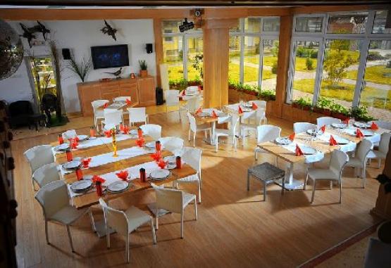 CAMERE: este compusa din 3 corpuri de cladire, totalizand un numar de 11 camere duble si 3 apartamente, capacitatea de cazare fiind de 36 de persoane.Toate camerele sunt prevazute cu baie proprie, tv, frigider, AC, terasa.