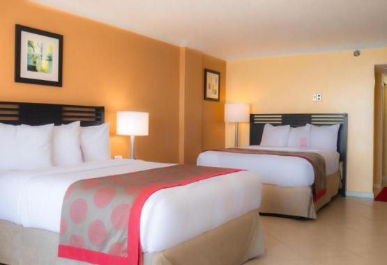 Each warmly decorated room at Ramada Plaza by Wyndham Marco Polo Beach Resort features a wall-mounted, 27-inch LCD TV. A fridge and a small table with chairs are provided. Many rooms have a private balcony.