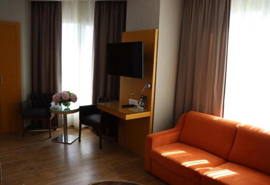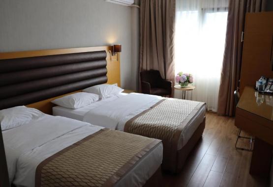 Toate camerele Hotelului au mobilier confortabil și sunt dotate cu aerul și baie proprie modernă, prevăzută cu ușcător de păr.