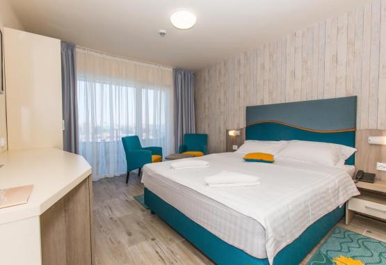 Localizare:In centrul statiunii Mamaia, este cel mai inalt hotel de pe litoral avand 14 etaje ridicate la numai 20 m de plaja si o vedere panoramica deosebită asupra Mării Negre si a lacului Siutghiol. Hotelul a fost complet modernizat la interior in 2016 si realizat cu ultimele tehnici de confort, oaspetii care ii trec pragul experimentand un produs si servicii superioare standardului de trei stele.Cazare:167 camere duble standard cu vedere la mare, 56 camere duble VIP cu vedere frontal la mare si dotări superioare, 14 camere Studio VIP (incluzand o canapea extensibilă si dotări superioare), 2 apartamente situate la etajul 14 al hotelului cu vedere frontal la mare si 3 camere tip Family Suite. Toate camerele sunt dotate cu pat matrimonial.Camerele ofera gratuit WI-FI, TV prin cablu, sistem automat de climatizare și balcon dotat cu masuta si scaune. Baile proprii au in dotare cabine moderne de dus, uscator de par si articole de toaleta atent selectionate. Receptia hotelului functioneaza nonstop in timpul sezonului iar programul restaurantului-terasa este 07:00-10:00 Mic Dejun si 12:00-00:00 A la carte. Pentru confortul oaspetilor oferim camera de bagaje si asistenta in manipularea si depozitarea acestora.Copiii sunt intotdeauna beneveniti la Riviera si vor fi fericiti in cele 2 locuri de joaca, unul in interior cu supraveghere atenta iar altul sub cerul liber, chiar langa terasa hotelului. Parintii se pot bucura astfel de un pranz in familie sau de linistea unei seri perfecte la restaurantul Sago by Catalin Scarlatescu.