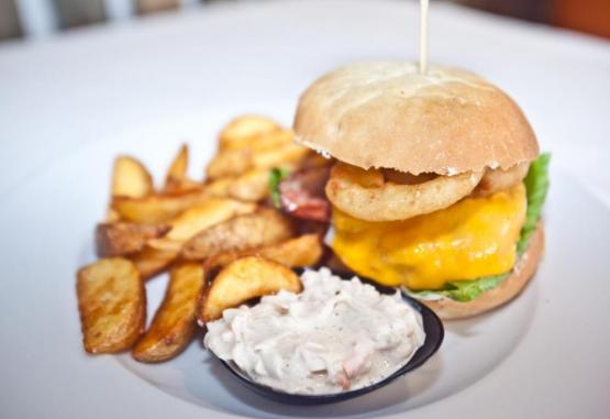 Pubul Ryans se deschide spre o terasă cu vedere la mare și servește hamburgeri, sandwichuri și o varietate de beri și cocktailuri.