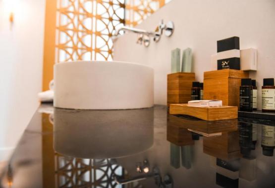 Camerele au un decor minimalist și toate sunt dotate cu un birou și prize USB langă pat, o măsuță de toaletă, un televizor cu ecran plat, un uscător de păr și o zonă de relaxare confortabilă. Fiecare cameră are propria baie privată dotată cu articole de toaletă de lux. Majoritatea unităților se deschid spre un balcon privat cu vedere la oraș și la malul mării.