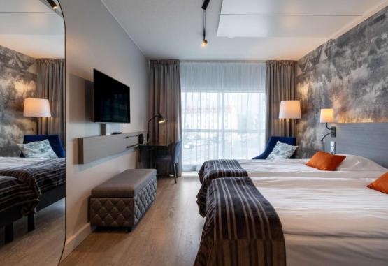 Camerele luminoase combină designul scandinav cu funcționalitatea, fiind dotate cu Wi-Fi gratuit, TV cu ecran plat și minibar. Restaurantul hotelului servește preparate tradiționale finlandeze și internaționale, cu accent pe ingrediente locale proaspete.