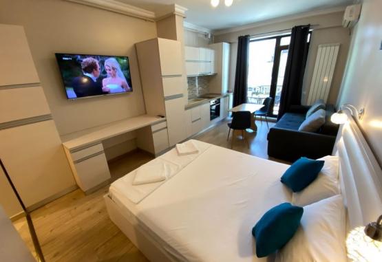 Solid Residence Mamaia este situata pe malul lacului Suitghiol, la 250m de plaja, in zona centrala a Cazinoului, aproape de principalele atractii turistice.Va informam ca incepand cu sezonul 2023, se va incasa la receptie in momentul cazarii taxa de statiune, reprezentand 1% din valoarea tarifului de cazare fara T.V.A, pentru fiecare noapte de cazare conform HCL NR. 614/27.12.2022DotariCladirea, cu arhitectura minimalista, este deservita de lift, iar la parter dispune de un supermarket cu program non stop.Solid Residence ofera parcare privata gratuita, in limita locurilor disponibile. Dotari camereFiecare apartament are bucatarie proprie utilata cu masa, prajitor de paine, plita de gatit, cuptor, ustensile de bucatarie, cana fierbator, masina de spalat, cuptor cu microunde, frigider.Studiourile se compun dintr-un open space cu un pat matrimonial (160x200) si o canapea extensibila (120x190), bucatarie echipata, baie cu cabina de dus. Acestea au o suprafata de 35 mp.Apartamentele cu un dormitor se compun din living cu canapea extensibila, dormitor cu pat matrimonial (160x200), bucatarie echipata, baie cu cada sau cabina de dus si balcon mobilat (masa si scaune). Camerele sunt separate cu usa, iar aer conditionat exista doar in living, dar TV este in ambele incaperi. Acestea au o suprafata de 50 mp. Apartamentele cu 2 dormitoare au living cu canapea extensibila, doua dormitoare cu pat matrimonial, baie cu cada/cabina de dus, balcon mobilat si bucatarie echipata. Toate cele 3 camere detin TV si usi, insa aer conditionat este doar in living.Acestea au o suprafata 65 mp. Capacitate Camere:Studio - 4 adulti;Apartament cu 1 dormitor - 4 adulti;Apartament cu 2 dormitoare - 6 adulti.