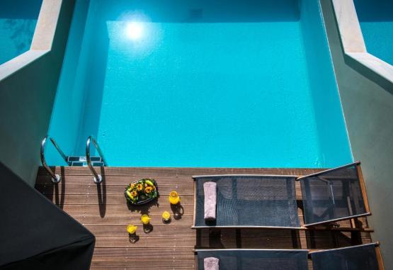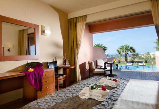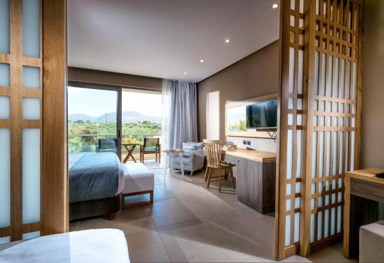 Toate unitătile de cazare au aer conditionat, mobilier elegant in tonuri de pămant si vedere la piscină, grădină sau Marea Cretei. Sunt dotate cu TV prin satelit, minifrigider, papuci si articole de toaletă gratuite. Unele unităti de cazare au piscină proprie, cu terasă din lemn.