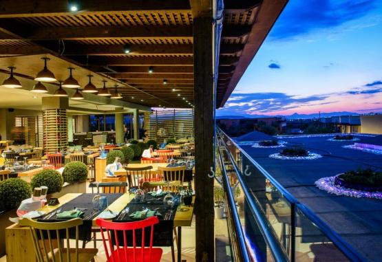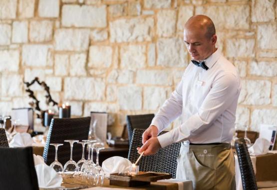 Restaurantul principal serveste preparate mediteraneene si internationale in stil bufet si găzduieste cu regularitate seri tematice. Restaurantul Elia oferă mancăruri à la carte, inspirate din bucătăria cretană. Oaspetii pot asculta muzică live la pian in barul din interior, iar barurile Kohili si Thalassa de langă piscină servesc cocteiluri exotice.