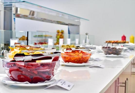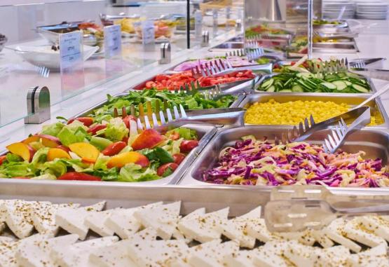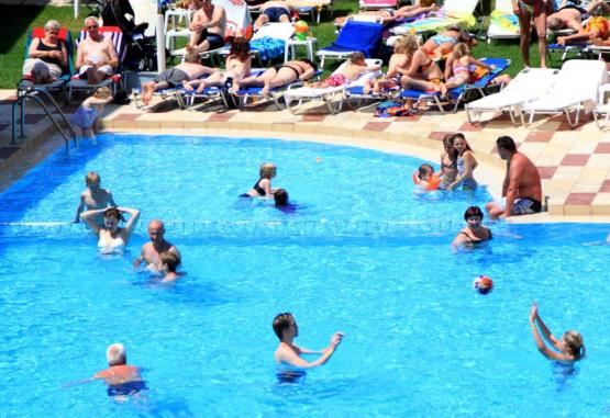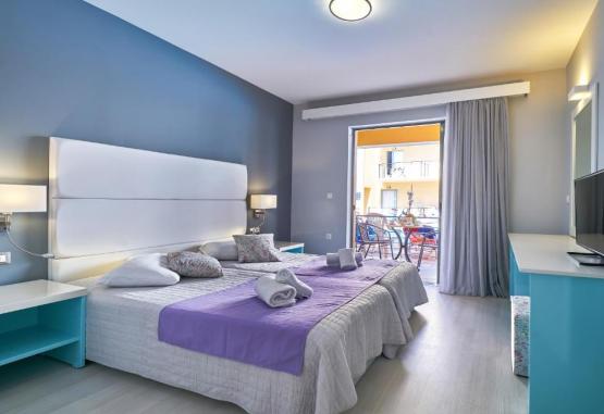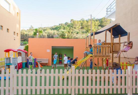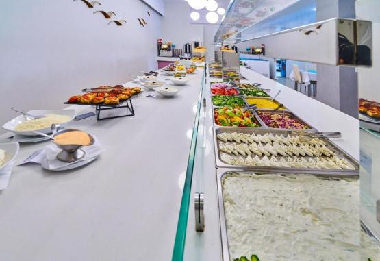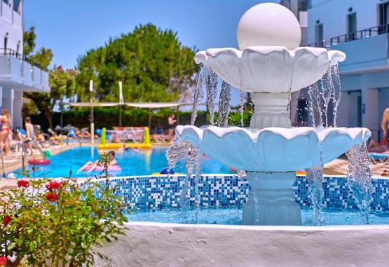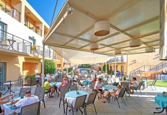 Facilități hotel: piscină in aer liber cu bar, un restaurant tip bufet (specific grecesc și italian), bar, piscină pentru copii, seri cu cina tematică, muzică/spectacol live, bufet potrivit copiilor, snack bar, cameră de bagaje, teren de joacă pentru copii, magazine (in unitatea de cazare).