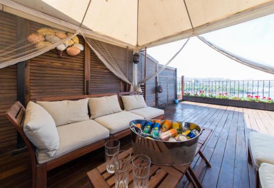 Terrace Suites Golden Horn se află in Istanbul și oferă acces gratuit la internet WiFi și un restaurant pe acoperiș, cu vedere la mare. Hotelul are o zonă de relaxare și zonă de luat masa in aer liber. Oaspeții pot savura băuturi sau deserturi la cafeneaua din curtea acoperită.