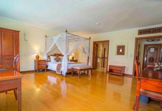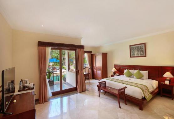 Camerele spațioase de la The Grand Bali Nusa Dua oferă vedere la piscină și grădină și au zone de relaxare. Facilitățile includ TV prin satelit, cutie de valori si facilităti de ceai/cafea. Băile cu finisaje din marmură au cadă și duș separat.