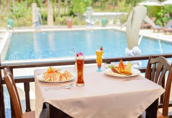 Restaurantul confortabil servește o varietate de mancăruri internaționale și preparate cu fructe de mare. La cerere, oaspetii pot beneficia de room service.