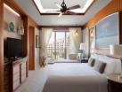 Camerele de la The St. Regis Saadiyat sunt spațioase și decorate in stil mediteranean și au pat cu pilotă și perne de lux, televizor si iPod docking station. Baia privată are chiuvetă dublă, cadă de sine stătătoare, duș cu efect de ploaie si articole de toaletă marca Remède.