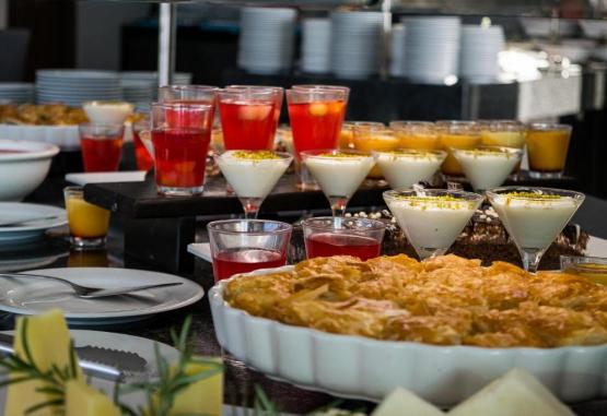 Restaurantul Christina servește specialități locale și mancăruri internaționale. Barul de la piscină și cafeneaua Theo oferă o listă amplă de cocktailuri, sucuri proaspete și gustări ușoare.