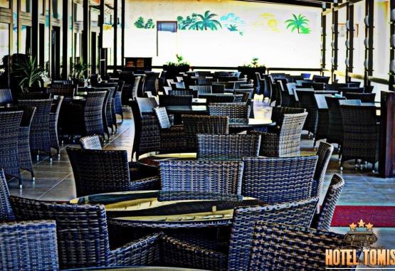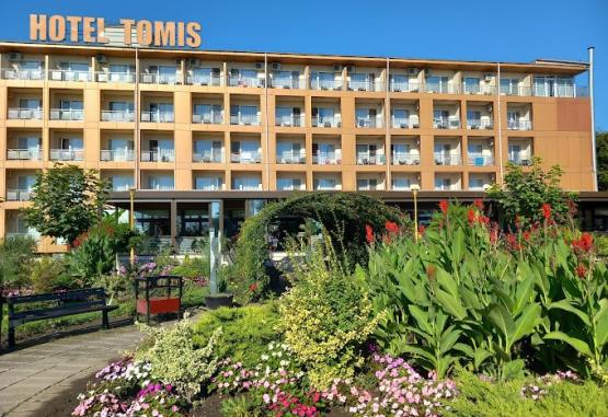 Informatii Hotel Tomis dispune de plaja privata.Turistii beneficiaza de 2 sezlonguri gratuite si o umbrela!HOTEL TOMIS este situat in partea centrala a statiunii, la 100 m de plaja si detine 173 camere duble dintre care 150 camere duble cu 2 paturi sau pat matrimonial (preponderente cu pat matrimonial), 13 camere triple formate dintr-un pat matrimonial si 1 pat pentru 1 persoana (camerele triple au suprafata mai mare decat cele duble), 2 apartamente (compuse din living si dormitor) si 8 suite de lux. Va informam ca incepand cu sezonul 2023, se va incasa la receptie in momentul cazarii taxa de statiune, reprezentand 1% din valoarea tarifului de cazare fara T.V.A, pentru fiecare noapte de cazare conform HCL NR. 614/27.12.2022Dotari si serviciiAcesta pune la dispozitia turistilor restaurant 150 locuri, terasa, parcare gratuita in limita disponibilului. Hotelul are 4 etaje, lift, 2 sali conferinte a cate 50 de locuri fiecare, loc de joaca pentru copii.Locatia dispune de plaja privata , bar pe plaja, umbrelute, paturi si dusuri - acces gratuit.Nu se accepta animale de companie.Servicii masaMASA: restaurant propriu 3*.Mic dejun - bufet suedez;Demipensiune - mic dejun bufet suedez + pranz sau cina in sistem fisa cont (75 lei/ persoana/ zi);Pensiunea completa- mic dejun bufet suedez + pranz si cina in sistem fisa cont (150 lei/ persoana/ zi).PACHETELE CU DEMIPENSIUNE SI PENSIUNE COMPLETA NU INCLUD MASA PENTRU COPII 0 - 11.99 ANI (INCLUD DOAR MIC DEJUN).Dotari camereDatorita dispunerii paralele cu linia tarmului o parte din camerele Hotelului Tomis au vedere catre mare si o parte au vedere la lac.Toate camerele ofera: aer conditionat, TV-LCD, minibar, baie cu cada (in apartamente si in camerele triple); baie cu dus (in camerele duble), balcon cu gresie, masuta si 2 scaune, internet, pardoseala din gresie, halate de baie si papuci, uscator de par, telefon.Camerele cu vedere la mare/vedere lac au in dotare 1 pat matrimonial.Patul suplimentar este tip 'pull-out', incorporat in patul matrimonial, iar dimensiunea este de 80/170 cm.Camerele triple au fost renovate in 2018, si sunt compuse dintr-un pat matrimonial (1.60/1.90) si un pat pentru a 3-a persoana (0.90/1.90).Suita Deluxe cuprinde un spatiu deschis format dintr-un living cu canapea extensibila si dormitor cu pat matrimonial.Facilitati copii in camera cu 2 adulti:- 1 copil 0- 2.99 ani - beneficiaza de cazare gratuita si mic dejun (fara pat suplimentar);- 1 copil de la 3 - 6.99 ani - beneficiaza de cazare gratuita (fara pat suplimentar) si achita 50% din valoarea micului dejun;- 1 copil de la 7- 11.99 ani - va achita 50% din valoarea unui loc de cazare cu mic dejun inclus cu asigurare de pat suplimentar;- 1 copil de la 12- 13.99 ani - va achita 70% din valoarea unui loc de cazare cu mic dejun inclus cu asigurare de pat suplimentar;- 2 copii 0- 2.99 ani - beneficiaza de cazare gratuita si mic dejun daca acestia dorm in pat cu parintii;- 2 copii de la 3- 11.99 ani: primul copil va achita 50% din valoarea unui loc de cazare cu mic dejun inclus, cu asigurare de pat suplimentar, iar al 2-lea copil va achita 50% din valoarea micului dejun;Peste 14 ani se va considera adult.In camera dubla standard se vor caza maxim 2 adulti si un copil de la 0-6.99 ani.In camera dubla cu pat suplimentar se vor caza maxim 2 adulti si doi copii (pentru cel de al 2 lea copil se vor respecta conditiile de mic dejun, in functie de varsta, iar cazarea se va face in pat cu parintii, cu acordul scris al acestora).Patul suplimentar, este de tip 'pull-out', incorporat in patul matrimonial, iar dimensiunea este de 80/170 cm.