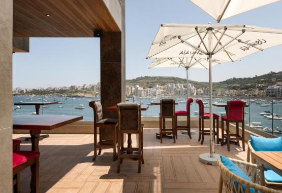Restaurantul principal servește preparate mediteraneene și internaționale, iar restaurantul à la carte oferă o experiență culinară rafinată cu specific maltez. Poziționarea hotelului permite explorarea ușoară a golfului St. Paul's Bay și a zonelor istorice din imprejurimi.