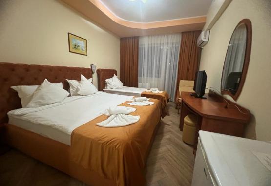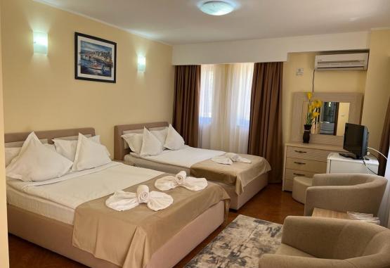 HOTEL VERA 3* situat in statiunea Eforie Nord se bucura de o pozitie excelenta, chiar in centrul statiunii, la doar 5 minute de plaja. Complexul este format din trei corpuri de cladire moderne: Corpul A (inaugurat in 2005) cu 4 etaje, Corpul B (2011) cu 2 etaje, iar Corpul C (2013) cu 3 etaje.Turistii peste 14 ani vor achita la receptia hotelului taxa de statiune dupa cum urmeaza: 3 lei/pers/zi in perioada 01.01 - 30.04 si 01.10 - 31.12, respectiv 5 lei/ pers/zi in perioada 01.05 - 30.09. Persoanele cu handicap sunt scutite de la plata.Dotari si serviciiHotelul Vera, ofera 105 camere duble si 12 apartamente, spatii luminoase si confortabile, ideale pentru relaxare in timpul vacantei. Oaspetii au la dispozitie doua restaurante si doua terase unde se pot bucura de preparate savuroase, un bar de zi pentru momentele de relaxare, precum si parcare proprie gratuita (in limita locurilor disponibile).Piscina exterioara, situata la Corpul C, este dotata cu sezlonguri gratuite pt oaspetii hotelului, dar si cu o sectiune speciala pentru copii, cei mici au parte si de un loc de joaca dedicat, in timp ce parintii pot profita de atmosfera linistita.Pentru evenimente sau intalniri de afaceri, hotelul dispune de o sala de conferinte moderna. In plus, oaspetii beneficiaza de seif la receptie, iar corpul A si corpul C sunt echipate cu lift pentru un plus de confort.Check -in ora 18.00Check-out ora 12.00.Servicii masa:Mic dejun - in regim bufet suedez.Dotari camere:Toate camerele au dotari complete pentru o vacanta confortabila.Camerele duble sunt echipate cu pat matirmonial, TV, minibar, telefon, aer conditionat, baie cu dus, uscator de par, internet, sistem de incalzire propriu, senzori de fum, pardoseala din gresie si granit, precum si balcon cu mobilier, cu exceptia unor camere din Corpul B.In corpurile A si C, camerele de la etajul 1 beneficiaza de terasa comuna.Camerele standard din corpurile B si C au pat de 160x200 cm, iar camerele duble superioare din Corpul A au pat de 180x200 cm si sunt mai spatioase.Camerele triple standard includ pat matrimonial si pat single, balcon si aceleasi dotari ca la camerele duble. Camerele triple superioare dispun de un pat matrimonial si un pat single, TV, aer conditionat, telefon de interior, minifrigider, internet, baie cu cada/cabina de dus, uscator de par, balcon. In corpul A, camerele triple superioare de la etajul 1 dispun de o terasa comuna. Apartamentele sunt formate din living si dormitor, cu dotri ca la camerele duble, diferenta o face cada cu hidromasaj.Apartamentele superioare, situate in Corpul C, au vedere la piscina, mobilier diferit si sunt decomandate, cu usi separate pentru fiecare camera.Facilitati copiiIn camera cu 2 adulti:- copiii cu varsta cuprinsa intre 0-11.99 ani beneficiaza de gratuitate la cazare cu mic dejun inclus, fara pat suplimentar;- pentru al doilea copil ( sau mai multi) cu varsta cuprinsa intre 1-11.99 ani, achita 55 lei/zi micul dejun, fara pat suplimentar;- copiii cu varsta cuprinsa intre 12 - 17.99 ani achita 99 lei/zi micul dejun cu pat suplimentar inclus in camera dubla ( standard sau superioara);- al treilea adult ( copii peste 18 ani sunt considerati adulti) achita achita 100% dintr-un loc de cazare si se asigura pat suplimentar si mic dejun.La solicitarea unui pat suplimentar se achita 99 lei/zi.Facilitatile oferite pt copii sunt valabile numai daca acestia sunt inscrisi pe rezervare, respectiv pe voucherul de cazare.