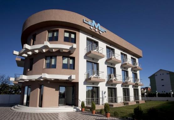 Vila La Mer Eforie Nord 3 stele este situata in zona de nord a statiunii, la aproximativ 700 de metri de plaja.Turistii peste 14 ani vor achita la receptia hotelului taxa de statiune dupa cum urmeaza: 3 lei/pers/zi in perioada 01.01 - 30.04 si 01.10 - 31.12, respectiv 5 lei/ pers/zi in perioada 01.05 - 30.09. Persoanele cu handicap sunt scutite de la plataDotari si servicii:Vila dispune de 15 camere, terasa, cafenea, parcare proprie in limita locurilor disponibile. Pentru cei mici, in curtea vilei este amenajat un loc special de joaca.Dotari camere:Camerele duble au o suprafata de 20-22 mp. Sunt dotate fie cu pat matrimonial, fie cu paturi twin, repartizarea se face la receptie, in functie de disponibilitate.Camerele triple sunt dotate cu un pat matrimonial si inca un pat single. Suprafata 20 mp.Apartamentul este format din living cu o canapea extensibila 140/200, un dormitor cu pat matrimonial 180/200 si chicineta dotata cu microunde, frigider, zona de masa, fierbator. Suprafata 45 mp.Facilitati copii in camera cu 2 adulti: - 2 adulti + 1 copil 0-6.99 ani, beneficiaza de gratuitate la cazare, fara pat suplimentar.Capacitate maxima camera dubla: 2 adulti si 1 copil 0-6.99 ani.Capacitatea maxima camera tripla: 3 adulti si 1 copil 0-6.99 ani.Capacitate maxima apartament: 4 adulti si 1 copil 0-6.99 ani.