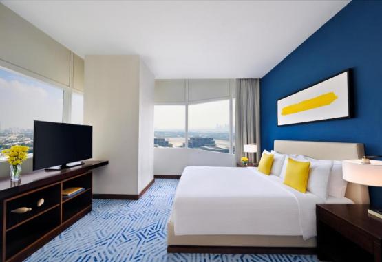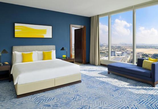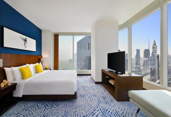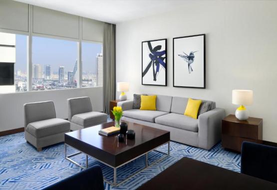 Cele 471 de camere ale noastre sunt dotate cu decor modern și dotări suplimentare care asigură un sejur confortabil. Datorită locației noastre in inima orașului și ferestrelor panoramice de la podea pană la tavan, camerele oferă vederi panoramice asupra Dubaiului. Indiferent dacă sunteți aici in interes de afaceri, intr-o călătorie de plăcere cu familia sau pentru o vacanță personală, există suficient spațiu pentru a vă relaxa. Bucură-te de o baie adancă in cadă, de un duș revigorant cu aer cald sau relaxează-te pe șezlongul confortabil, perfect pentru a-ți relaxa picioarele. Ai un spațiu de lucru practic, de mare viteză Conectivitate Wi-Fi și un televizor inteligent cu ecran mare in fața căruia să te relaxezi. Mai mult, am păstrat ce e mai bun pentru final, cu paturile noastre noi super confortabile, lenjerie albă imaculată, pilote și perne perfect căptușite care garantează un somn odihnitor.