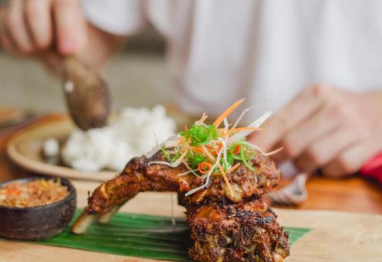 Cu vedere la zona rurală, Mr. Wayan Balinese Cuisine servește o selecție de mancăruri autentice balineze și internaționale.